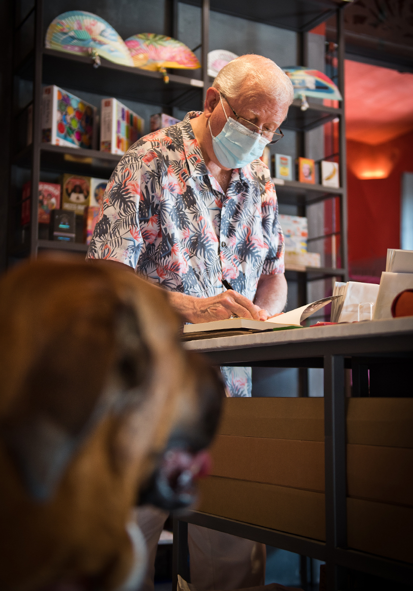 I came to visit because my human was getting a book signed by a very handsome gentleman named D.G. Heath. He lives in Merida too, but he does not have a bookshop He writes books so that they can be sold in a bookshop. His last book was about big animals that drink lots of water. Camels, I think you call them. They are strange as they only have two toes.