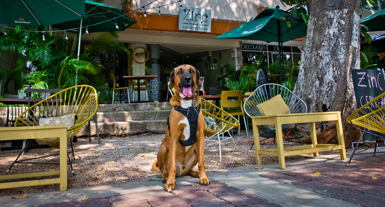 I have accepted the mission and I’m on the job to sniff out all the best pet friendly places to take humans in Yucatan. So many of you suggested that we try Zinc Comfort Food, we just had to head down there and check it out. It is, after all, on one of my favourite streets, the gorgeous Paseo de Montejo. Surrounded by colonial mansions, and watching the world go by, I almost felt like a European dog.