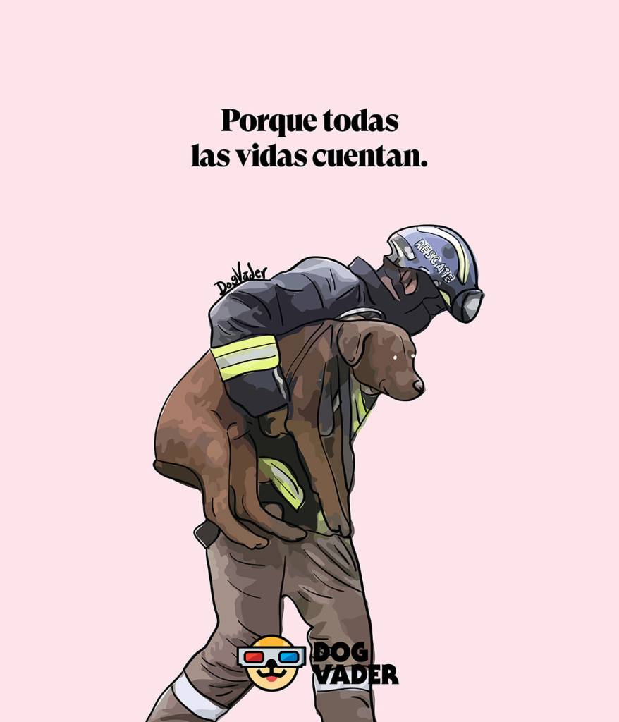 “Because all lives count”. This image shows the recent rescue of two dogs who had fallen into a giant sinkhole in Puebla. There was a national outcry for their rescue and true to form, the firefighters came through and rescued them.