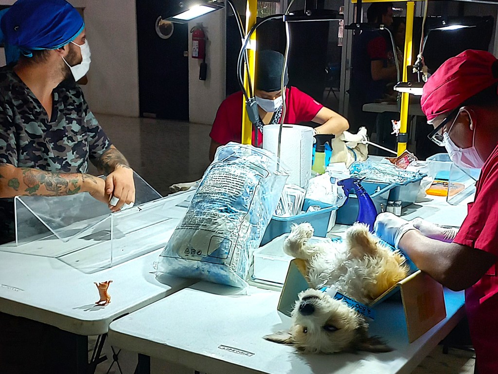 All surgeries carry risks, and spaying is more invasive than neutering. Complications, though rare, can include reactions to anesthesia, infections, or blood loss, especially if a female dog is in heat during the procedure. In private clinical situations, risks are assessed pre surgically. At large sterilisation clinics, which are often held in sub optimal conditions, with dogs that are higher than average risk, the knowledge and outstanding skill of specialist surgeons ensures that the incidence of surgical complications remains very low. These veterinarians are specially trained to perform a spay surgery in around seven minutes and will spay up to 50 dogs in a day.